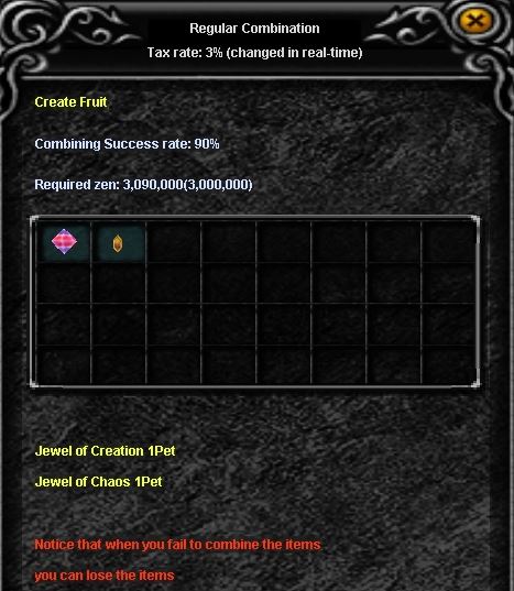 Чтобы создать Fruits, нужно обратиться к Chaos Goblin Machine, выбрать опцию «Regular Combination» и вложить необходимые предметы.